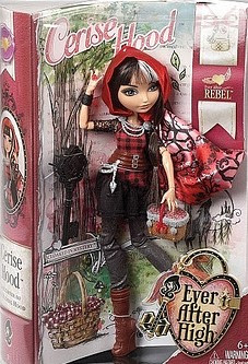 Cerise is supposed to be the daughter of Red Riding Hood and the big bad Wolf. (Eww!) Her original outfit included a red hooded cape and a plaid dress.