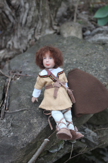 When I was buying Aidan at an antique mall the other day, (The same antique mall, and maybe even the same case where I bought the Kish Little Prince that I showed you HERE.), the cashier called him Frodo. I suppose there is a certain Frodoesque quality about him. He certainly looks like he's going on a journey, which he is.