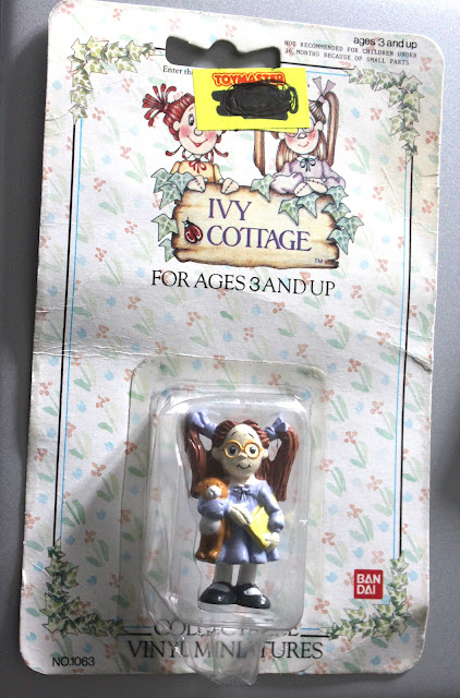Something I've mentioned before, but never posted about, is the small PVC Ivy Cottage figures. They were also made by Horsman, like the dolls. They were approximately 2 1/2 inches tall. They were carded figures, and we found them in Canada when Emma was very small. She already had the first book and the soft dolls, and she loved playing with little figures, so we bought them for her. She had Ruby Buttons, Miss Biscuit, and their goose, Hanna Honk. But we never managed to find Violet Pickles.